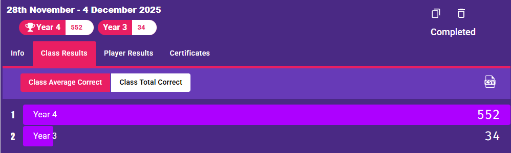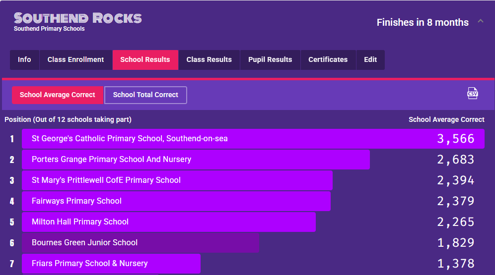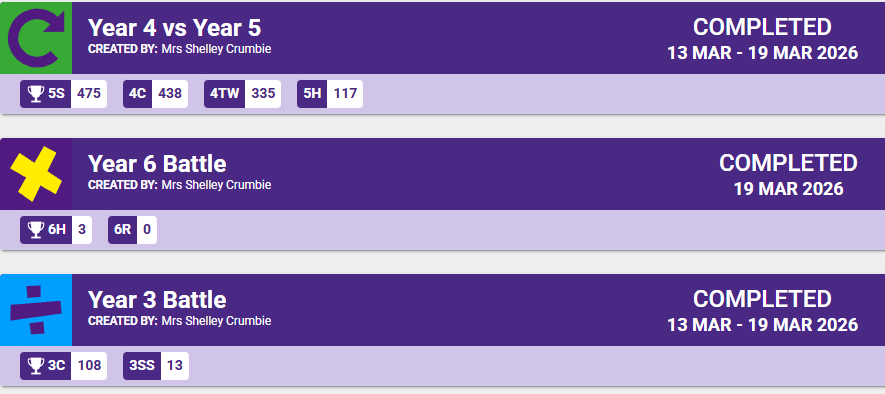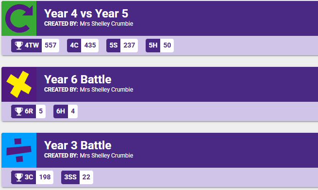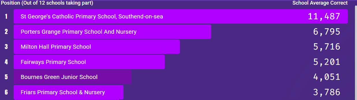 Bournes Green Times Table Rockstars Class Leader Board Number of correct answers |